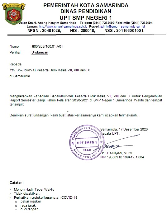 Pengambilan Rapor PAS Ganjil 2020